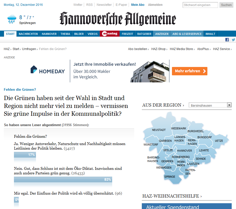 haz-Umfrage vom 06.12.16, aus der Onlineausgabe vom 12.12.16