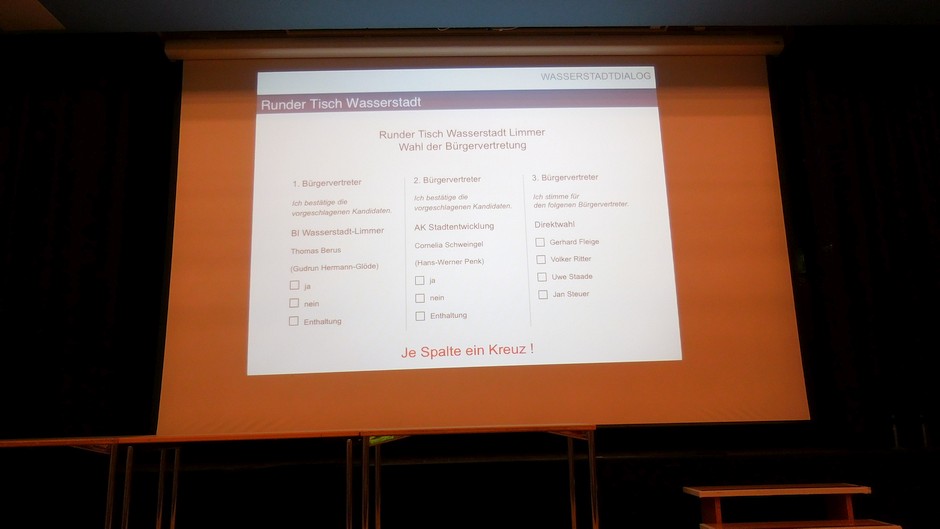 Inzwischen gibt es Konsens, mit einem Runden Tisch die Bürgerbeteiligung in die weitere Planung einzubringen. Die Versammlung bestimmt die VertreterInnen: Thomas Berus, Cornelia Schweingel und Uwe Staade. Von der anderen Seite sind die Vertreter aus der Bauverwaltung, der Wohnungswirtschaft und natürlich des Investors gesetzt. So bleibt man zumindest miteinander weiter im Dialog, wenn auch die Bürger nicht mitentscheiden können.