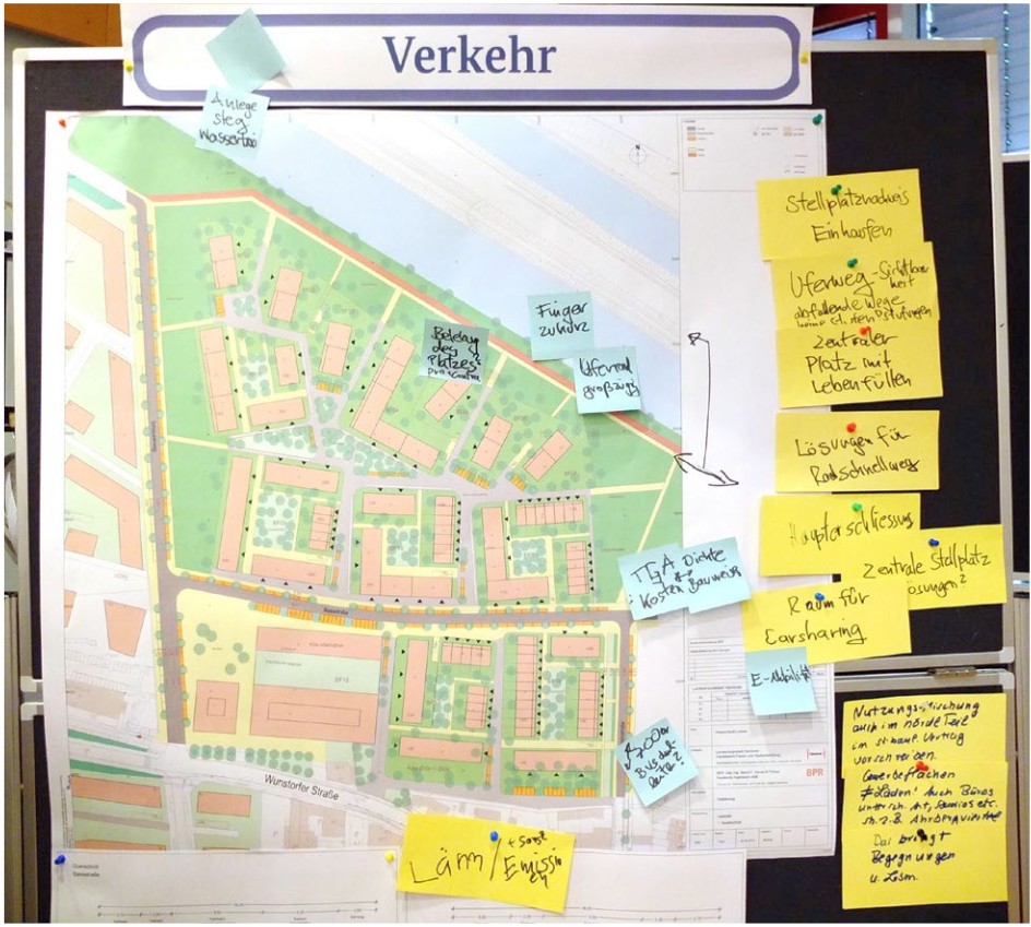 Die Probleme der verkehrlichen Anbindung werden von der Stadt jetzt einfach ausgeblendet. Die Themenkarte Mobilität zeigt jetzt nur noch die Erschließung innerhalb des Bauabschnittes, vor allem die oberirdischen Parkplätze. So soll vermutlich vom Engpass Wunstorfer Straße und der unklaren ÖPNV-Anbindung abgelenkt werden. Die Stellungnahmen des Runden Tisches klingen positiv und zuversichtlich, das Thema Bebauungsdichte bleibt aber strittig. Auch Bernd Hermann von den Investoren sympathisiert mit den Entwürfen, meldet aber Vorbehalte der Machbarkeit an. Im Zweifel wird die ganze Bürgerbeteiligung zur Makulatur.